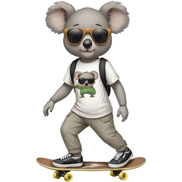 anthropomorphised koala in skater outfit with dark sunglasses walking upright, relaxed pose emoji | AI Emoji Generator