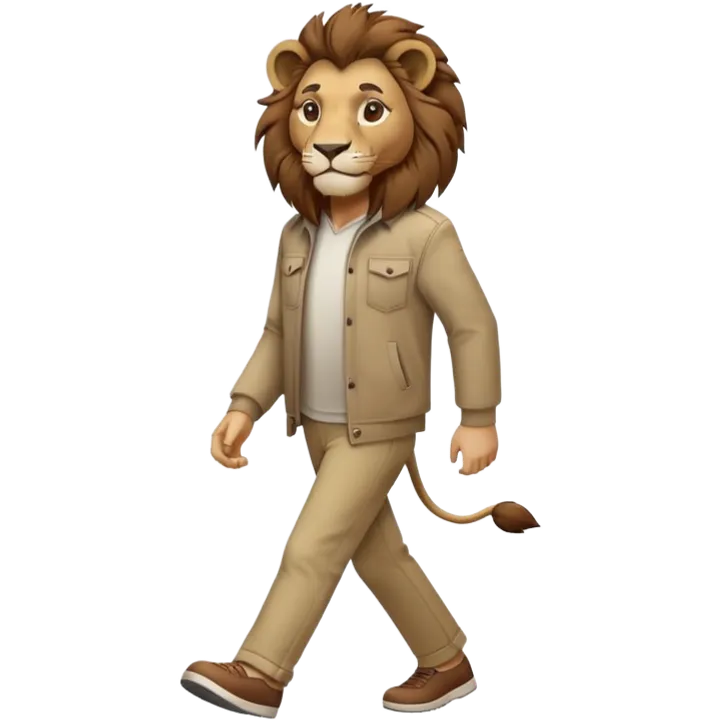 anthropomorphised lion in casual clothes walking upright, relaxed pose emoji | AI Emoji Generator
