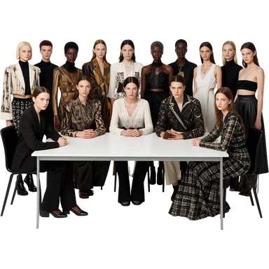 fifteen, twenty, thirty models squeezed together at a table emoji