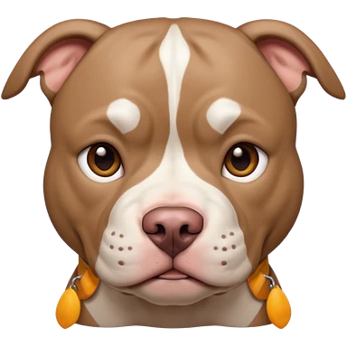 Large taupe colored pit bull with an adorable face emoji