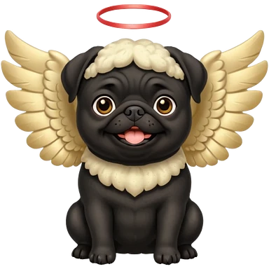 Black pug with beautiful ornate cream and gold angel wings emoji
