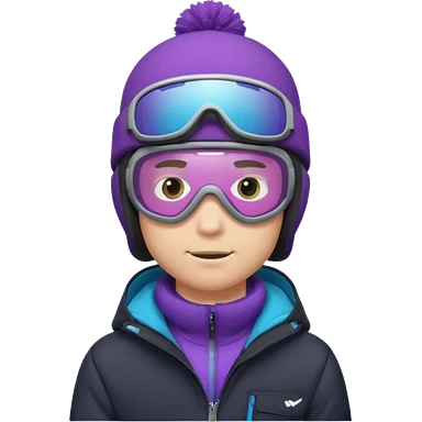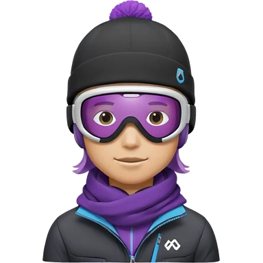 Pro Snowboarder with white and grey beanie, ONE pair of purple and blue frameless goggles on and a black jacket emoji