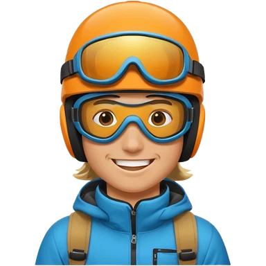 male Pro Snowboarder with white and grey beanie, ONE pair of purple and blue frameless goggles on and a black jacket emoji