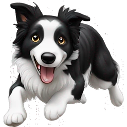 Anvil with border collie jumping over emoji
