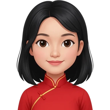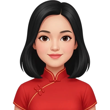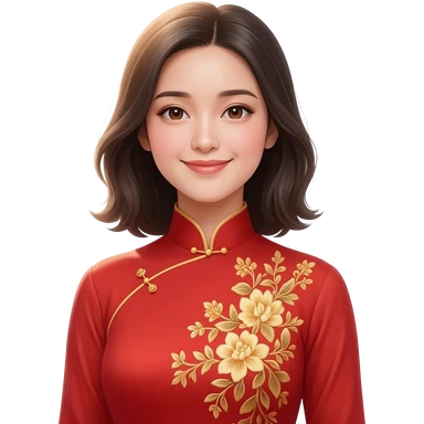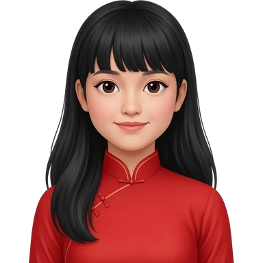 cô gái việt nam, tóc dài đen ngang vai, mặc áo dài đỏ, phong cách hoạt hình emoji