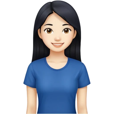 nữ 20 tuổi, tóc đen, dài , mượt, mặt cưới tươi vui vẻ, áo xanh đậm emoji