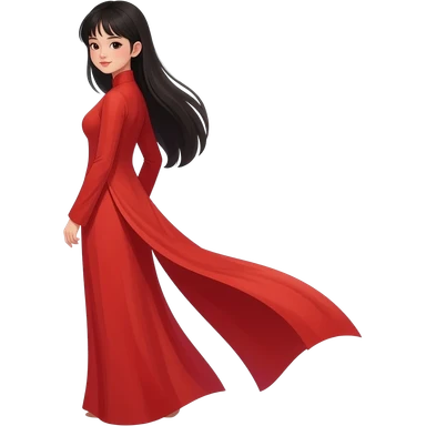cô gái việt nam, tóc dài đen ngang lưng, mặc áo dài đỏ, phong cách hoạt hình emoji