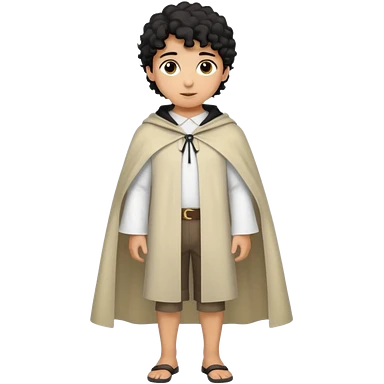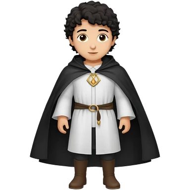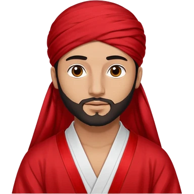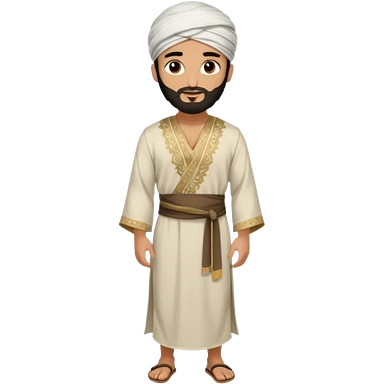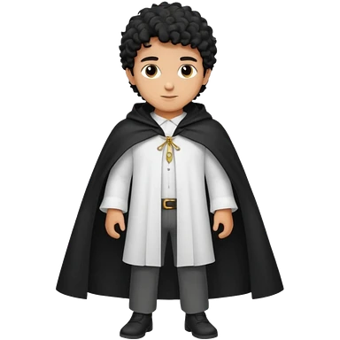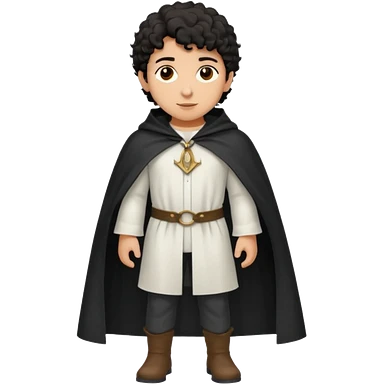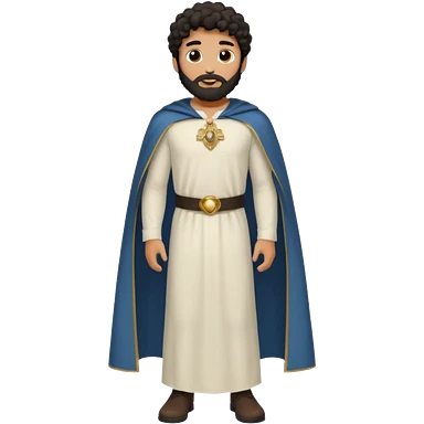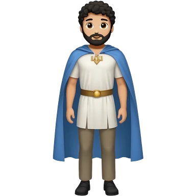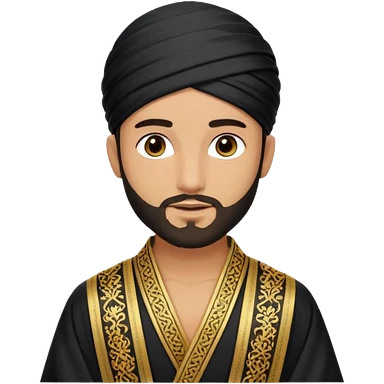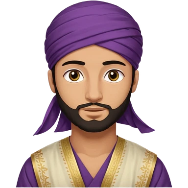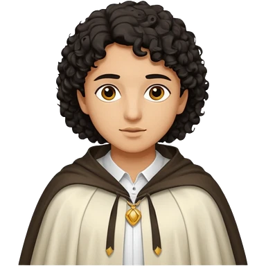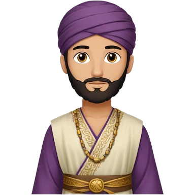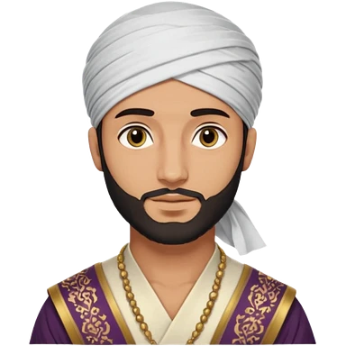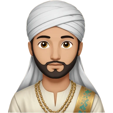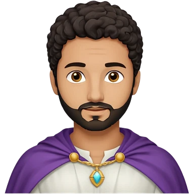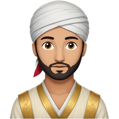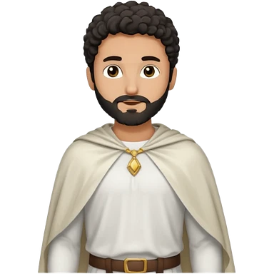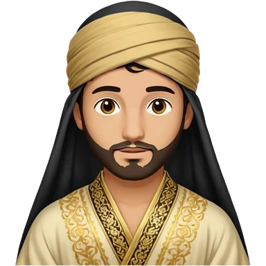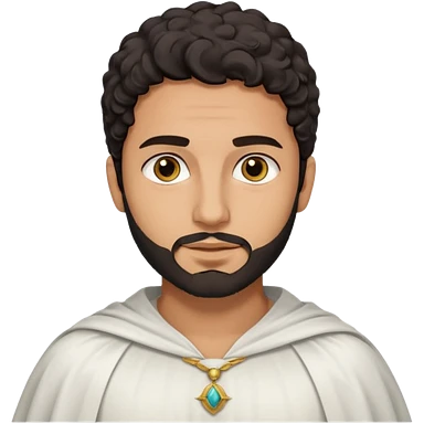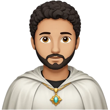 Apariencia: Joven de unos 25-30 años, atractivo,. -Rostro: Ojos oscuros, piel ligeramente morena, rasgos árabes finos. -Cabello: Negro, algo rizado o suelto, con barba fina. -Vestimenta: Cuando es “Don Carlos”, viste como cristiano (camisa blanca, capa corta, colores sobrios). emoji | AI Emoji Generator
