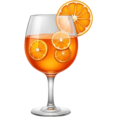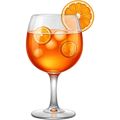 Aperol spritz in balloon glass with aperol spritz logo on it emoji