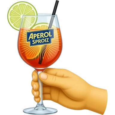 Aperol spritz in balloon glass with aperol spritz logo on it emoji