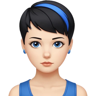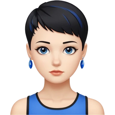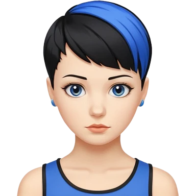 frau freche extreme schwarze Kurzhaarfrisur eine Seite wirklich fast keine Haare andere Seite mit blauer Strähne kurze Seite noch viel kürzer emoji
