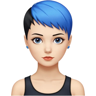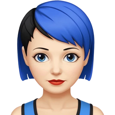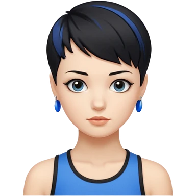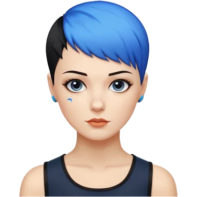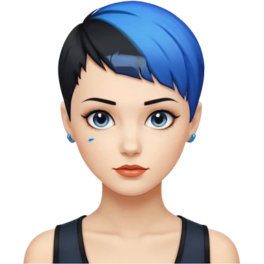 frau, kein kind freche extreme schwarze Kurzhaarfrisur eine Seite wirklich fast keine Haare andere Seite mit blauer Strähne kurze Seite noch viel kürzer emoji