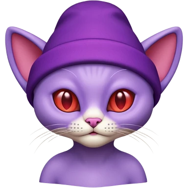 purple alien cat with no fur and red hat emoji