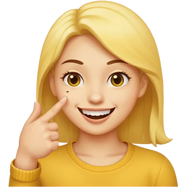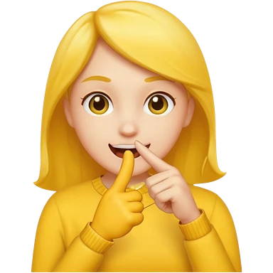 Make it a emoji yellow face (no gender) juste à face like that 😊 with a finger like that 👈 it it’s mouth like the emoji is biting it in a fliry way emoji
