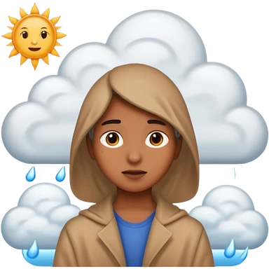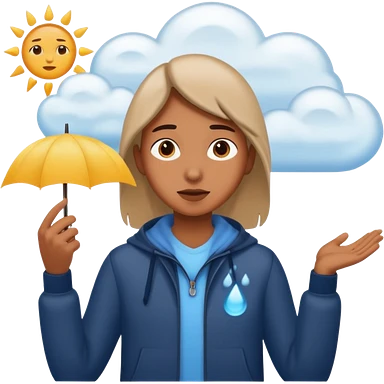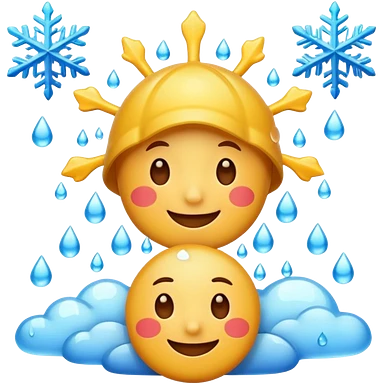 create a realistic emoji of a weather situations with a logistic worker in it, sun, rain, snow emoji