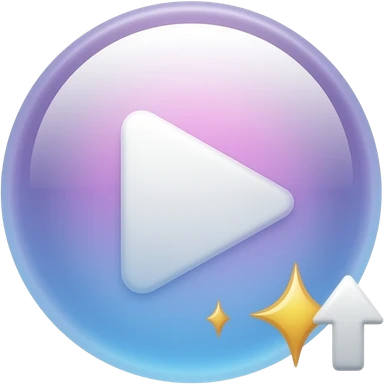 Apple-style 3D emoji of going viral, a play button or video icon with upward arrow and glowing spark effects, dynamic motion feel, glossy, minimal, soft shadows, white background, no text emoji