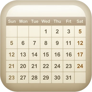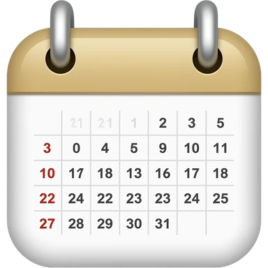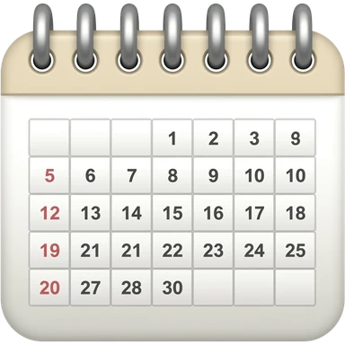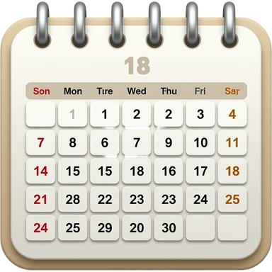 Apple-style calendar emoji, full month grid, top rings, beige and white, minimal, cute, soft shadows emoji