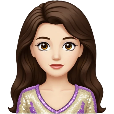 Maxene Andrews from The Andrews Sisters with long dark brown hair, cream sequin outfit emoji