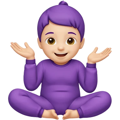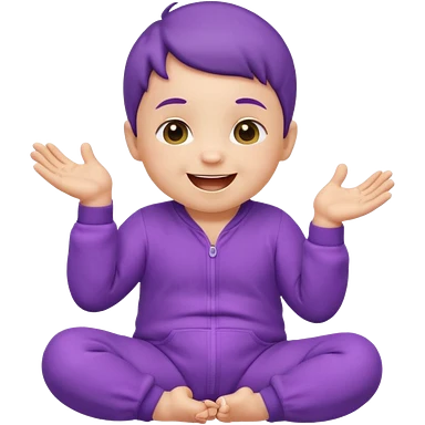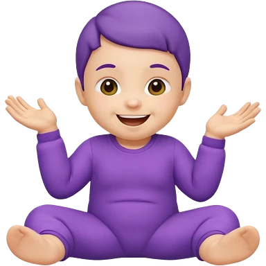Apple-style emoji of a baby wearing a purple onesie, sitting and laughing joyfully, with hands down. emoji