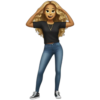 beyonce blonde hair jane wear leather jacket, smile happy emoji