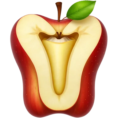 a partially eaten apple with many bites taken out around the middle of the apple revealing some of the core emoji