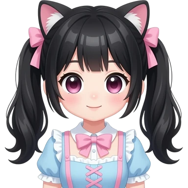shiny blushing cute kawaii pastel lolita anime catgirl pigtails trending style cottagecore black hair emoji