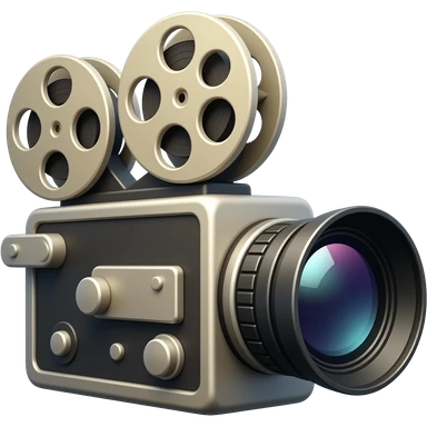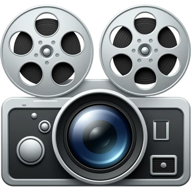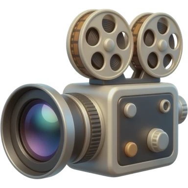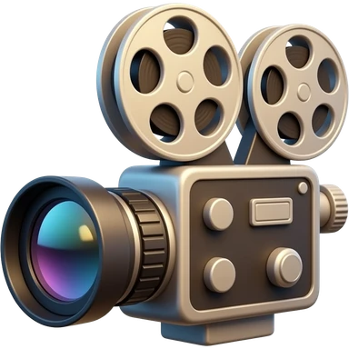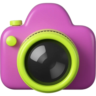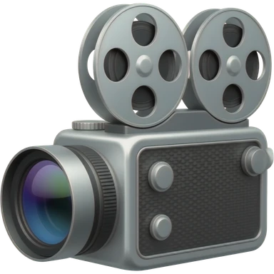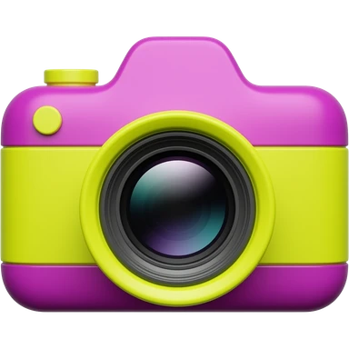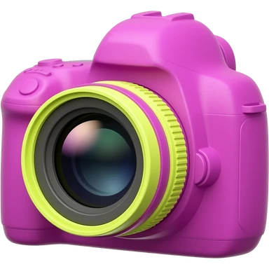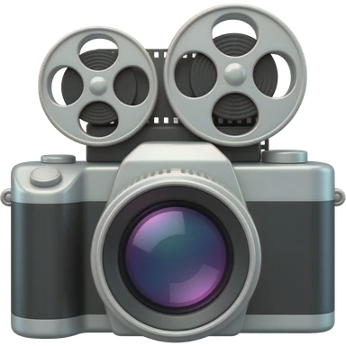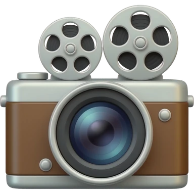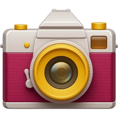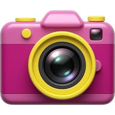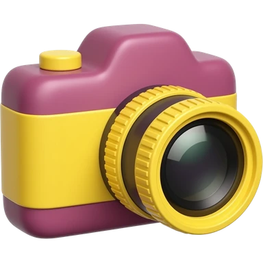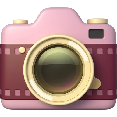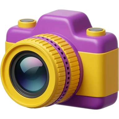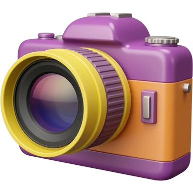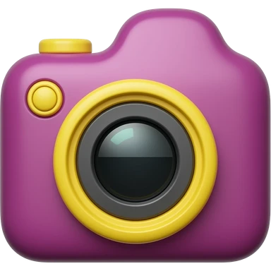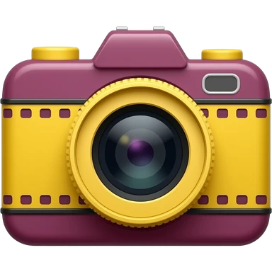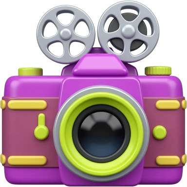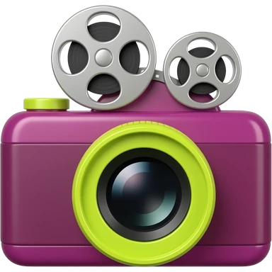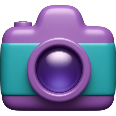 Apple emoji style film camera, glossy 3D rendered, smooth rounded design, deep purple (#610066) and teal (#045F70) color accents on the body, berry (#B4018C) lens ring, soft shading and highlights, white background, square emoji format emoji | AI Emoji Generator
