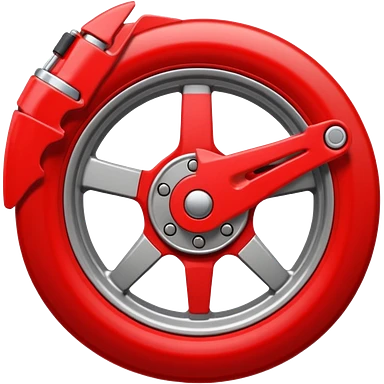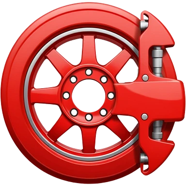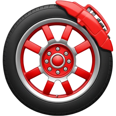 Apple-style emoji of a car wheel with a red brake caliper, clean simple emoji design, smooth shapes, flat yet slightly glossy look, centered on transparent background, no text, no extra details emoji