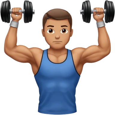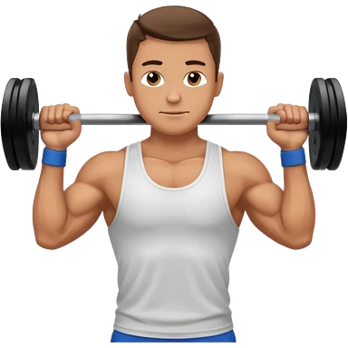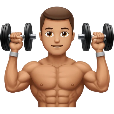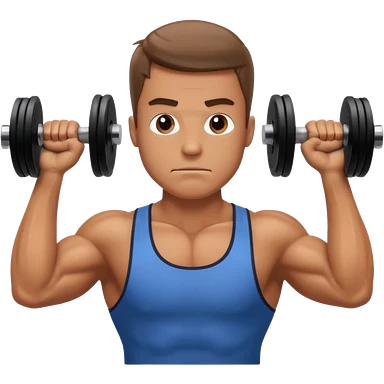 3D Apple emoji style person lifting weight, strong posture, centered, soft shadow, white background. emoji
