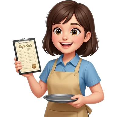 Apple iOS emoji style, cafe worker, beginner, holding tray awkwardly, slightly clumsy posture, bright enthusiastic expression, wide eyes, small mistakes, low skill level, high motivation, clean white background, simple composition emoji | AI Emoji Generator