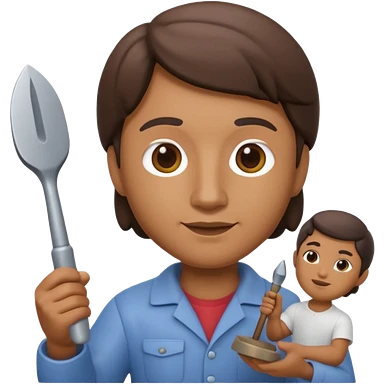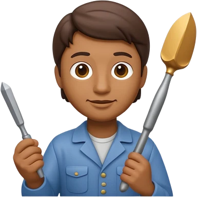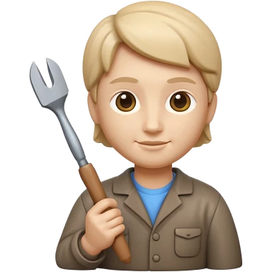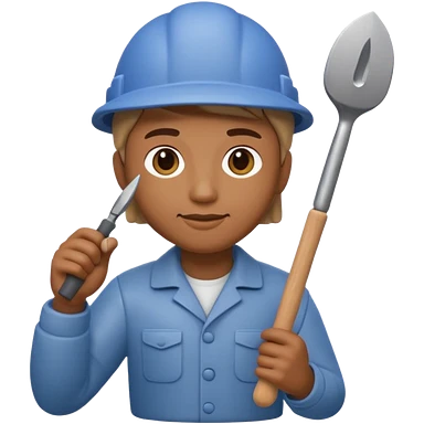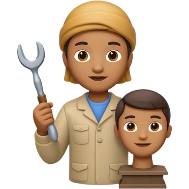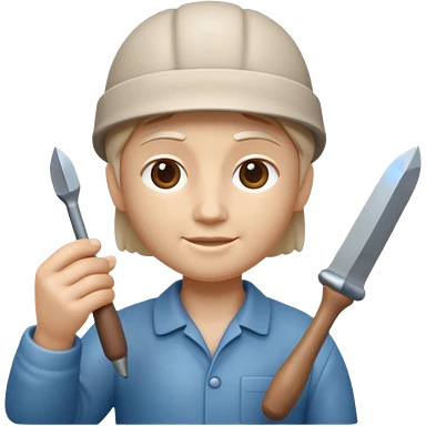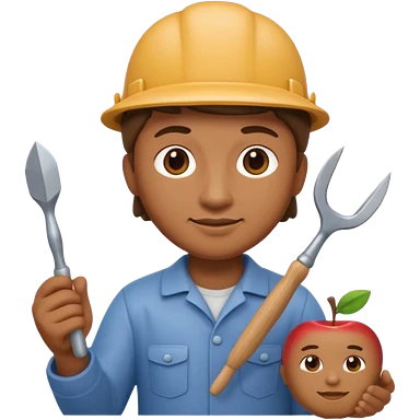 Apple Memoji-style 3D emoji of an engineer wearing a yellow hardhat holding a wrench, soft shading, rounded shapes, no background.