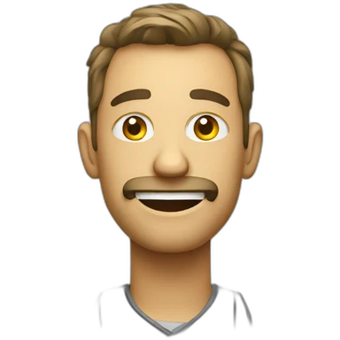 software engineer that is white male, with brown buzz cut hair, with white gold earrings, in front of laptop, apple-style emoji