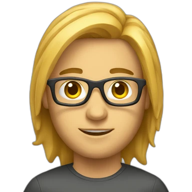 young software engineer buzz cut hair in front of laptop, apple-style emoji
