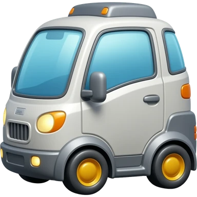 3D Apple-style emoji of a small delivery truck with a box container, simple wheels, and a shipping logo. Rounded, glossy, smooth, soft shadows, white background. emoji