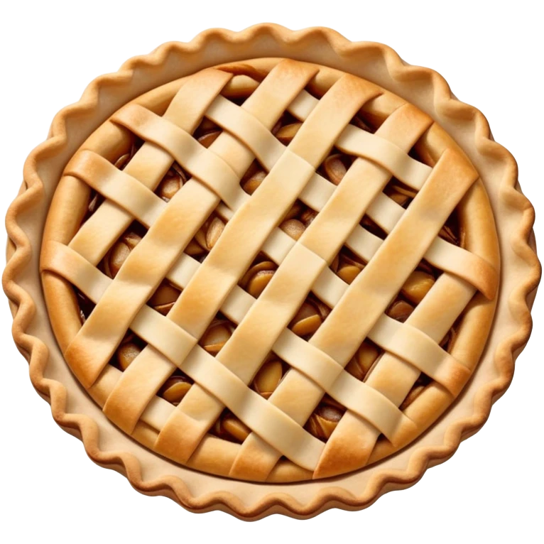 A highly detailed, photorealistic 3D render of a small, individual apple pie, with a golden-brown lattice crust. The filling is a rich, glistening red-amber, bubbling slightly. emoji