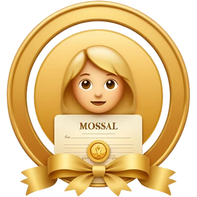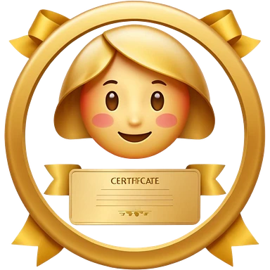 Apple iOS emoji style certificate icon, white document with rounded corners, gold seal and ribbon, soft gradients, glossy 3D emoji look, minimal, clean, centered, transparent background emoji