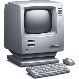 Vintage desktop computer from the 80s, bulky beige monitor with floppy disk drive, separate keyboard, nostalgic tech aesthetic emoji