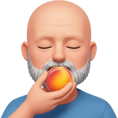 Bald guy with salt and pepper beard sucking on a very juicy peach emoji