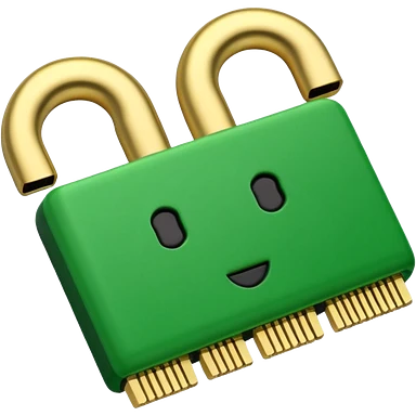 Apple-style 3D emoji of a single green RAM stick, gold connector pins at the bottom, small black memory chips on top, simple and clear design. emoji | AI Emoji Generator