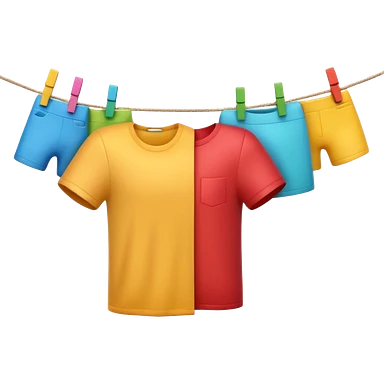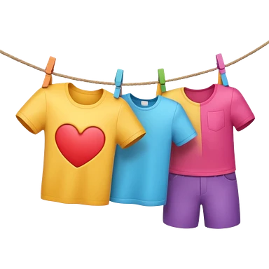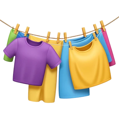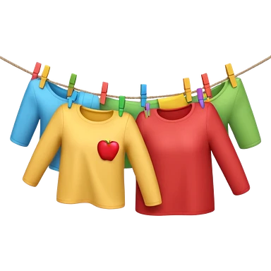 Apple-style 3D emoji showing two human hands hanging colorful clothes on a clothesline with clothespins, only hands, part of the rope, and laundry visible, bright cheerful atmosphere, clean white background, soft lighting