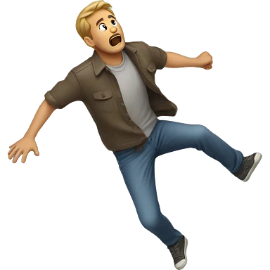 apple style emoji of a man in mid-air, falling down a mountain with a terrified expression emoji
