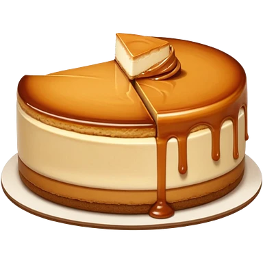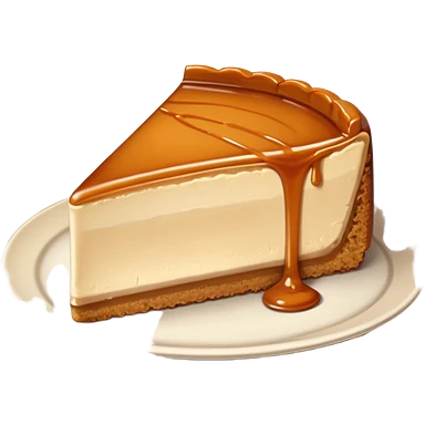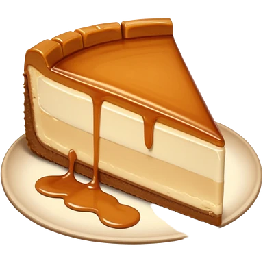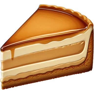a slice of cheesecake. The base is made of light brown biscuit; the first layer of filling is caramelized dulce de leche, and the upper layer is creamy, light beige, and has a smooth texture. On top, there is a caramelized dulce de leche topping dripping down the center of the slice emoji
