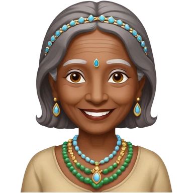 A old indian woman with a top saying "Wet queens meet and greet 2067" emoji