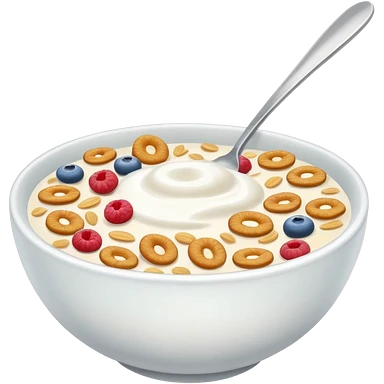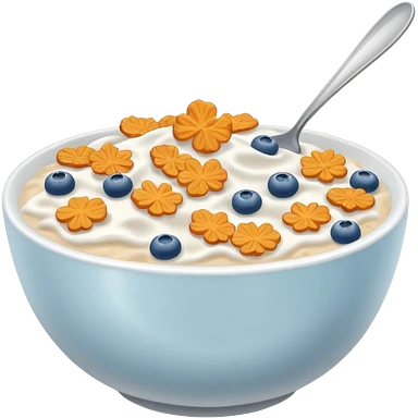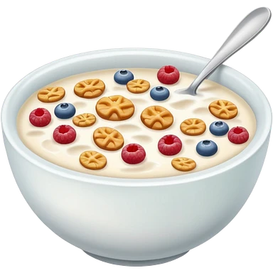 apple style emoji small shallow bowl of muesli, visible mix of beige rolled oats, dark brown raisins, light brown nuts, seeds, clean 3D minimal soft lighting clear forms, no anthropomorphic elements, no milk, no yogurt, no spoon, transparent background, emoji scaleemoji