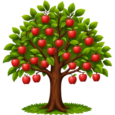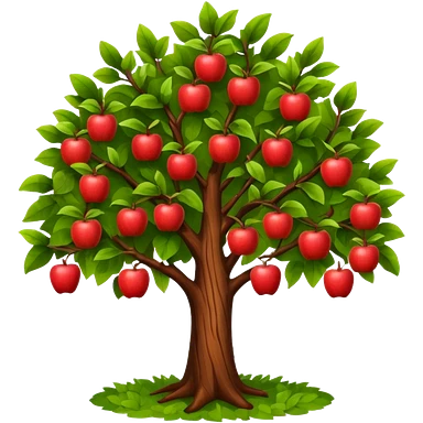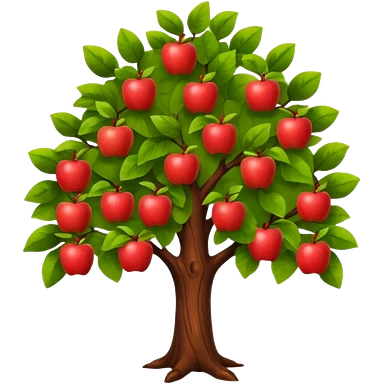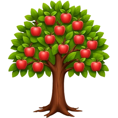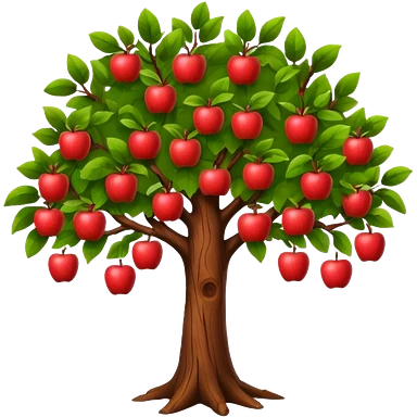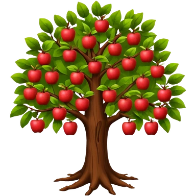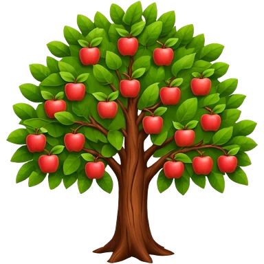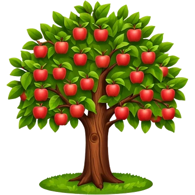 A 3D cartoon apple tree with red apples hanging from its branches, lush green leaves, bright daylight, Memoji-style realism. emoji