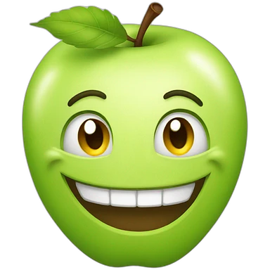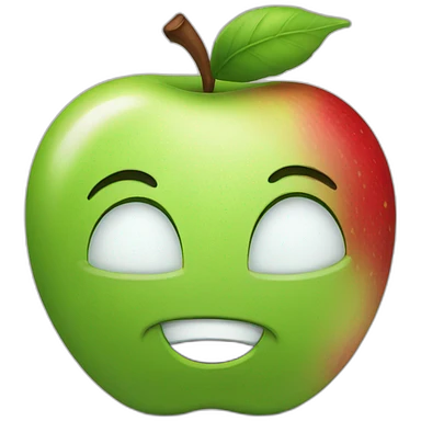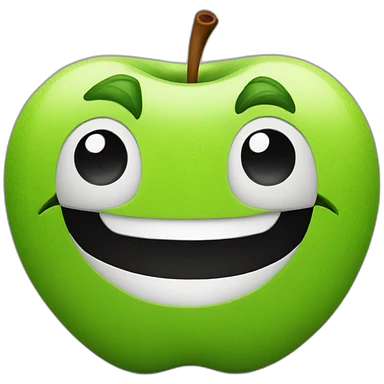 apple planet with a cartoon smirking with big courageous eyes which is circle shape emoji