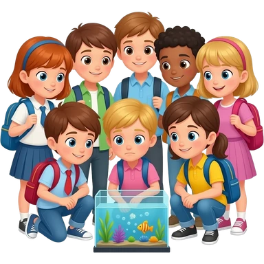 Colorful aquarium fish swimming gracefully in a crystal-clear tank. Brightly colored fish, like neon tetras, angelfish, and bettas, glide past vibrant coral, plants, and rocks. Soft light filters through the water, creating a peaceful, serene atmosphere. Transparent background. emoji
