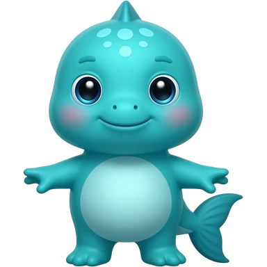 Create a majestic aquatic ice drake with a protective turtle shell, combining the first creature's friendly demeanor and defensive capabilities with the second creature's draconic elegance and elemental power, resulting in a creature that glides through frozen waters with glowing blue spines and gentle orange-gold wings. emoji