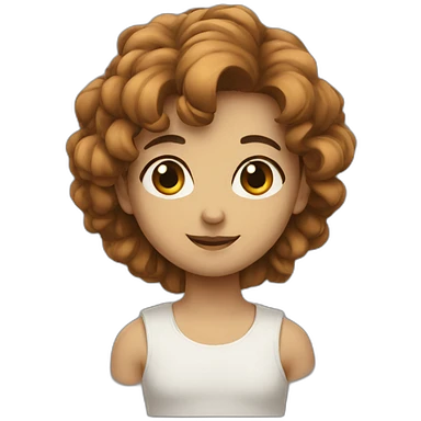 An Asain girl with black hair to her chest, wearing a white tight tshirt, she is holding a west highland terrier with big ears emoji