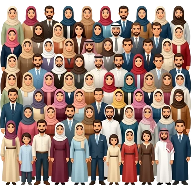 Arab family big family 100 people without men having a hijab emoji
